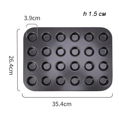 Форма для випічки міні десертів на 24 шт. — необхідний інвентар для будь-якого кондитера. Форма має антипригарне покриття. Використовується для приготування кексів, мафінів, капкейків та інших десертів.